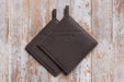 Vackra grytlappar i hållbart läder som kombinerar funktion och tidlös estetik. Levereras i set om 2 stycken, storlek 19 x 19 cm, perfekta för både kök och friluftsanvändning.