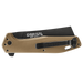 Fastball Cleaver 20CV Coyote från Gerber kombinerar amerikanskt hantverk med praktisk design för tuffa vardagsutmaningar. Med en smidig fingerflipper kan du snabbt och säkert fälla ut bladet, som i sin tur har en kraftig cleaver-form – perfekt för allt från finliret till tyngre uppgifter ute i fält.