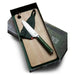 Det ergonomiska handtaget i grönt pakkaträ ligger skönt i handen och ger bra grepp, även i fuktiga miljöer. Med det medföljande fodralet i grönt läder förvarar du kniven säkert och smidigt – antingen upphängd eller i låda utan att bladet tar skada.