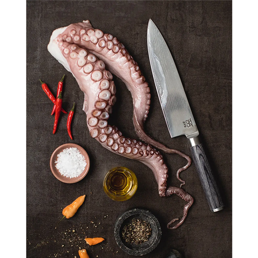 Den mångsidiga Damaskusstålkniven, smidd av 66 lager stål, levererar en vass och slitstark egg som ger precision vid allt från finhackning av örter...