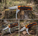 Det stabila fällmekanismen gör kniven säker och enkel att bära i fickan eller ryggsäcken. Handtaget i tydlig orange camo gör att du snabbt kan hitta kniven även om du lagt den på marken.
