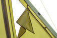 Tältets front är försedd med dubbla dragkedjor och öppningar från båda sidor, vilket ger maximal flexibilitet. Alla tre sidor kan vikas upp och användas som solskydd, medan separata myggnät skyddar mot insekter. Två generöst tilltagna fönster ger gott om ljus även när hela tältet är stängt.