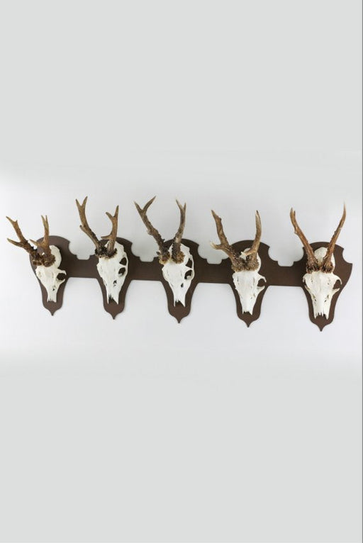 Visa upp dina troféer på ett nytt och stilrent sätt med denna klassiska monteringsplatta för 5 bockar, avsedd för horisontell placering. De fem tr...