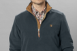 Sandhem 200-tröjan från Härkila i mörk marinblå färg är en mångsidig fleecetröja designad för att ge värme och komfort under långa dagar ute i fält.